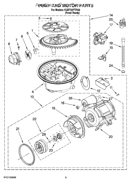 Parts for Kitchenaid KUDT03FTPA0: 08 - Pump And Motor Parts