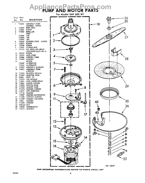 Parts for Whirlpool SAF600W1: 08 - Pump & Motor Parts