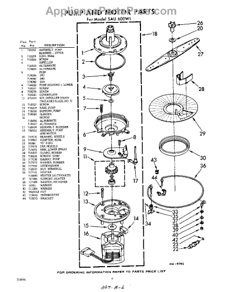 Parts for Whirlpool SAU600W1: 06 - Pump And Motor Parts