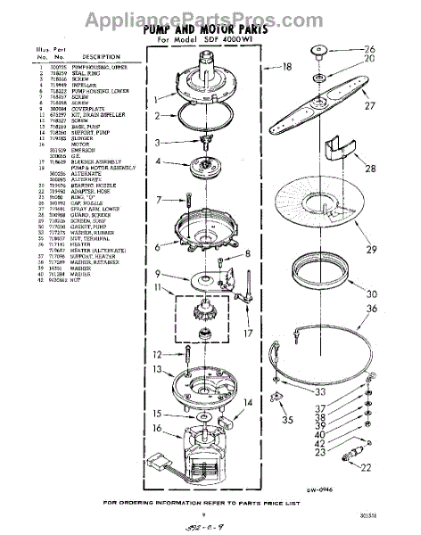 Parts for Whirlpool SDF4000W1: 09 - Pump And Motor Parts