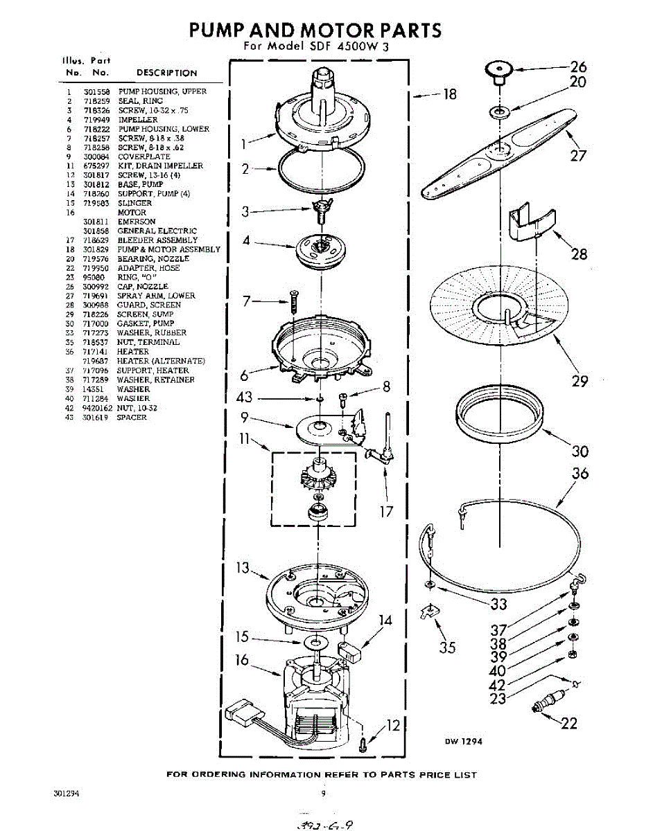 Parts for Whirlpool SDF4500W3: 09 - Pump And Motor Parts