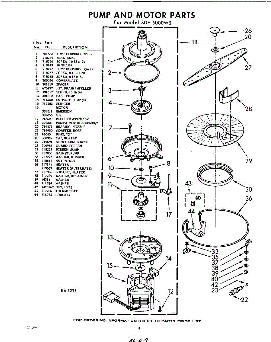 Parts for Whirlpool SDF5000W5: 09 - Pump And Motor Parts