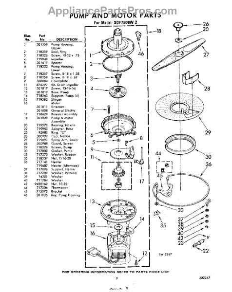 Parts for Whirlpool SDF7800W2: 09 - Pump And Motor Parts
