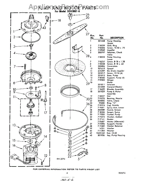 Parts for Whirlpool SDU30016: 06 - Pump And Motor Parts