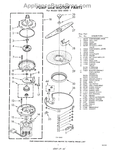 Parts for Whirlpool SDU60001: 07 - Pump And Motor Parts