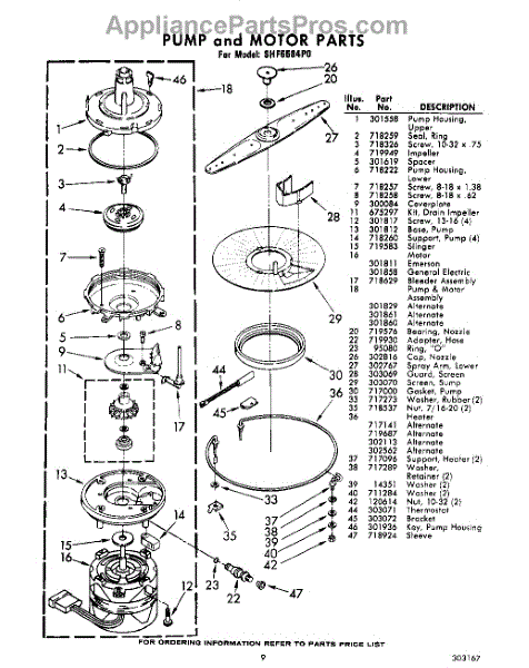 Parts for Whirlpool SHF5584P0: 09 - Pump And Motor Parts
