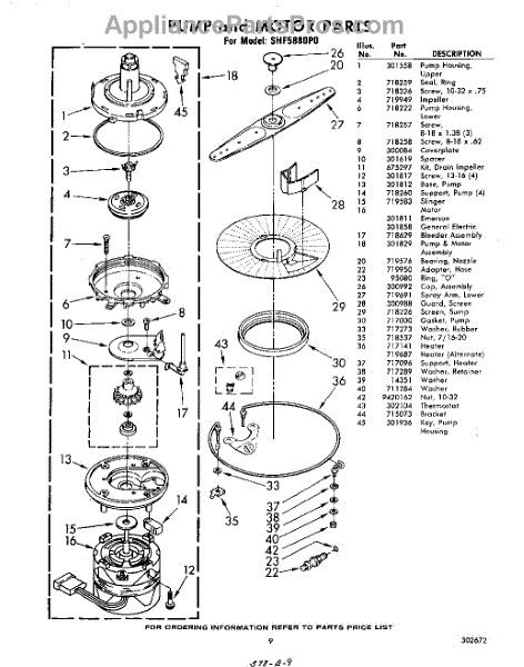 Parts for Whirlpool SHF5880P0: 09 - Pump And Motor Parts