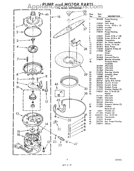 Parts for Whirlpool SHF7804W0: 09 - Pump And Motor Parts
