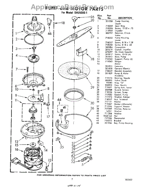Parts for Whirlpool SHU50001: 07 - Pump And Motor Parts
