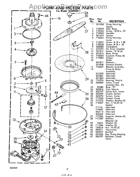 Parts for Whirlpool SHU55041: 06 - Pump And Motor Parts