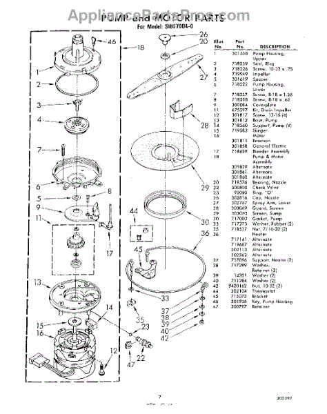Parts for Whirlpool SHU70040: 07 - Pump And Motor Parts