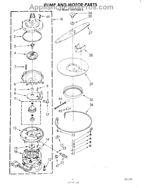 Parts for Whirlpool SHU70050: 05 - Pump And Motor Parts