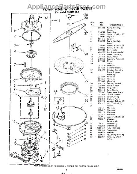 Parts for Whirlpool SHU75040: 06 - Pump And Motor Parts