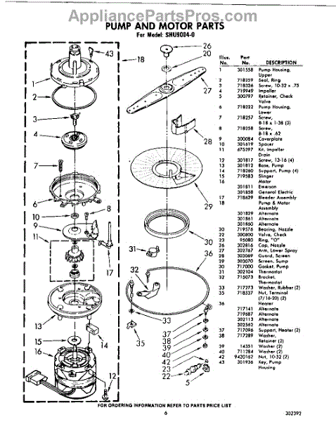 Parts for Whirlpool SHU90040: 06 - Pump And Motor Parts
