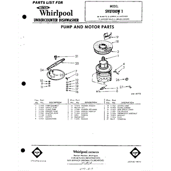 Parts for Whirlpool SVU100W1: 01 - Pump And Motor Parts