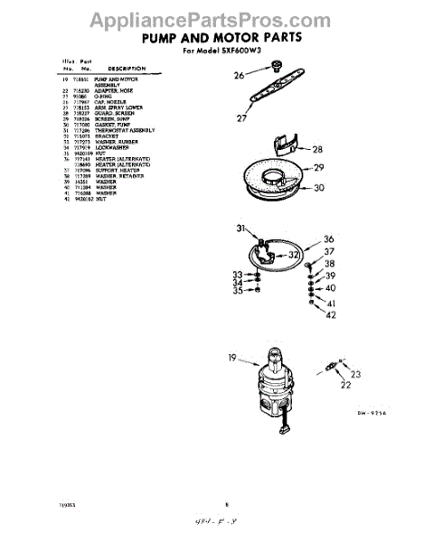 Parts for Whirlpool SXF600W3: 08 - Pump And Motor Parts