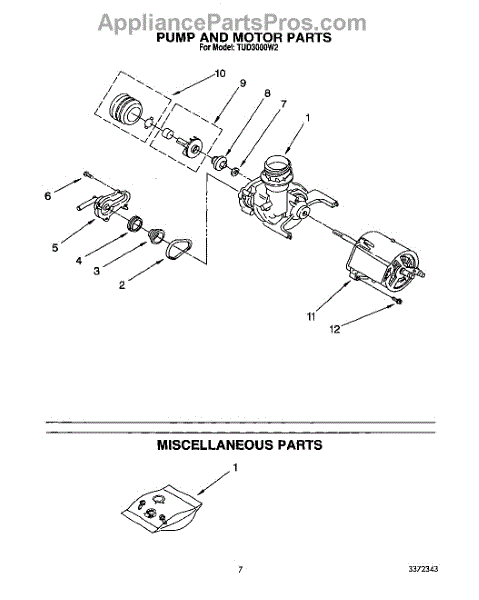 Parts for Whirlpool TUD3000W2: 06 - Pump And Motor, Miscellaneous Parts