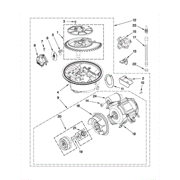 Fix standing water in your dishwasher tub with this drain pump motor assembly. Solves drainage failures and grinding noises. Moderate DIY repair.