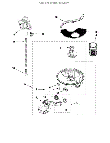 Filters debris from water to protect pump and spray arms. Replace if you notice slow drainage, poor cleaning, or water left in tub. Verify fit by model.