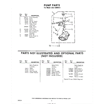 Parts for Whirlpool CXA1300W9: 06 - Pump , Parts Not Illustrated And Optional Parts