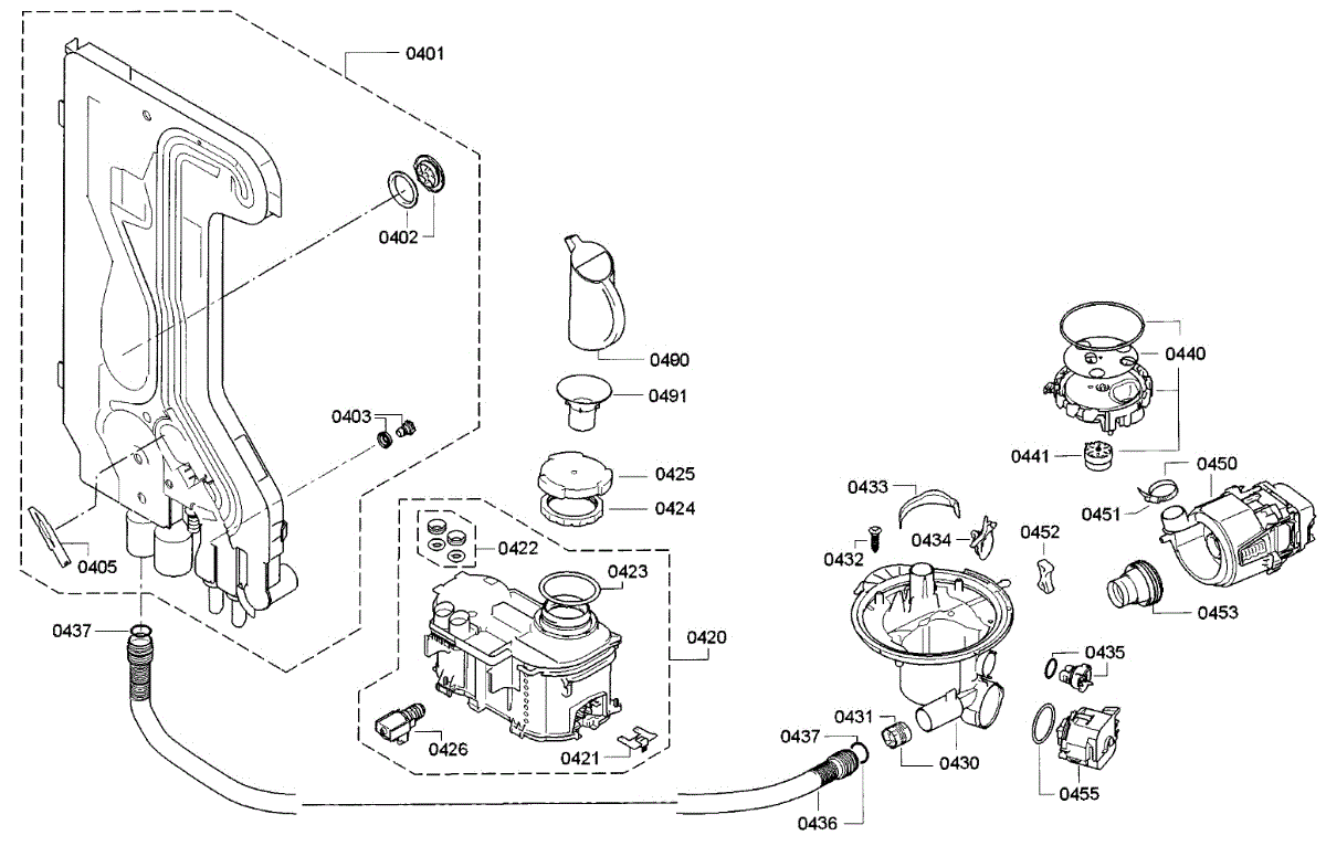 The Sump to Water Inlet Hose is an OEM replacement part for Bosch dishwashers. This hose provides a pathway connecting the dishwasher's sump and water inlet valve. It allows the sump to fill with water during different dishwashing cycles, facilitat