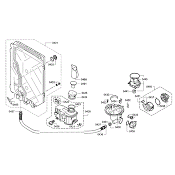 The Sump Assembly is an OEM part for Bosch dishwashers. It collects and channels water to the pump, ensuring proper circulation and drainage during the wash cycle.