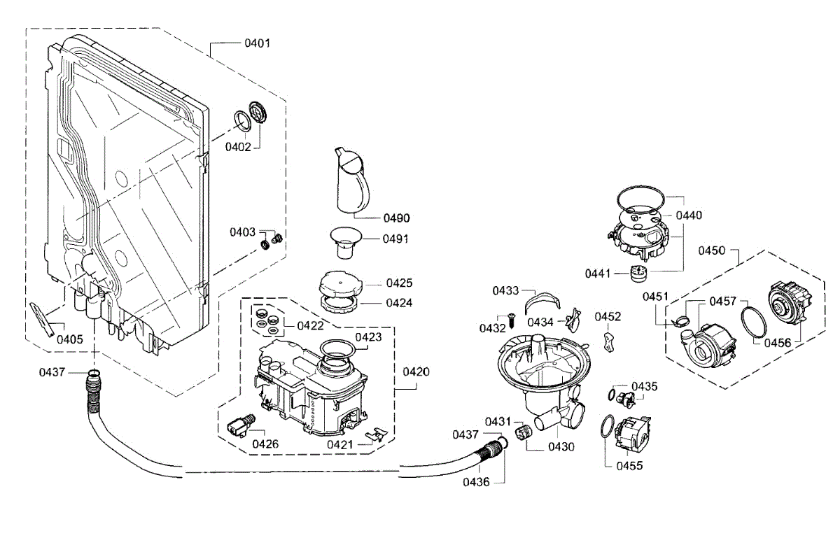 Fix E24 or E25 error codes with this dishwasher drain pump. Solves noisy pumping, slow draining, and drainage failures. Moderate DIY repair.