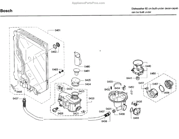 The Sump Assembly is an OEM part for Bosch dishwashers. It collects and channels water to the pump, ensuring proper circulation and drainage during the wash cycle.