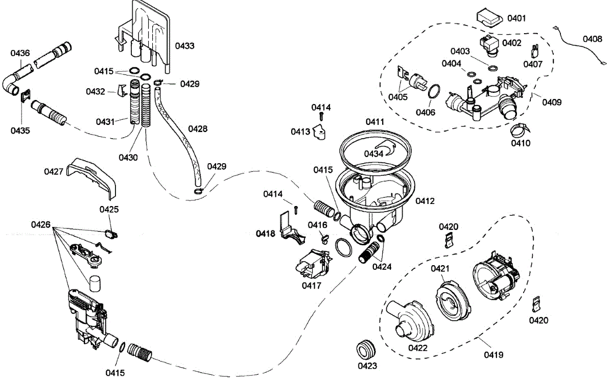 Seals connection between pump and sump to prevent leaks during wash cycles. Replace if water pools under dishwasher or pump noise occurs.