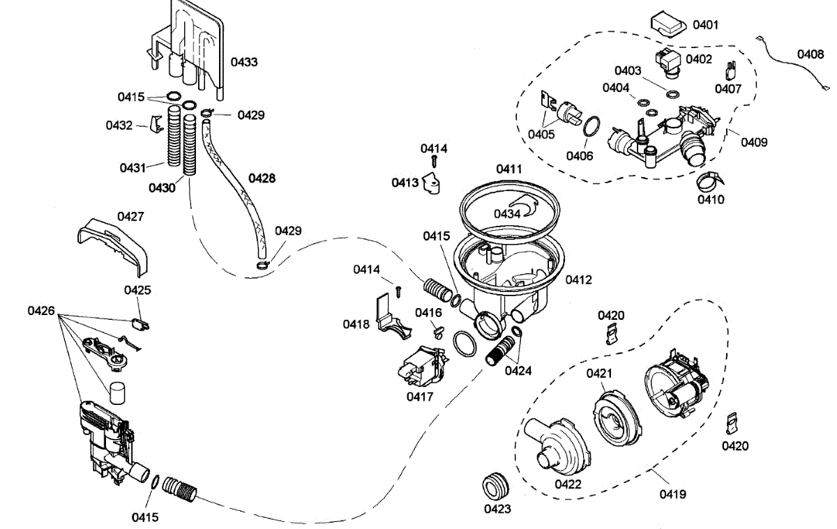 Seals connection between pump and sump to prevent leaks during wash cycles. Replace if water pools under dishwasher or pump noise occurs.