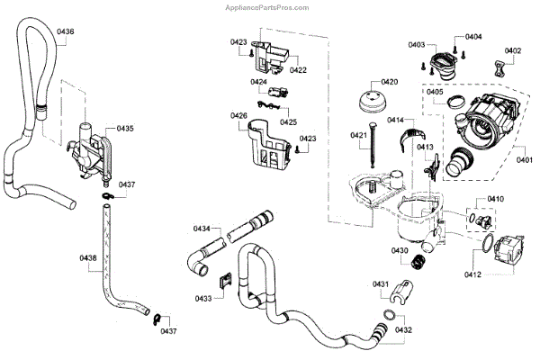 The Drain Hose is an OEM component for Bosch dishwashers. It is a flexible plastic tube responsible for removing used wash water from the dishwasher sump to household drain plumbing located outside the appliance.