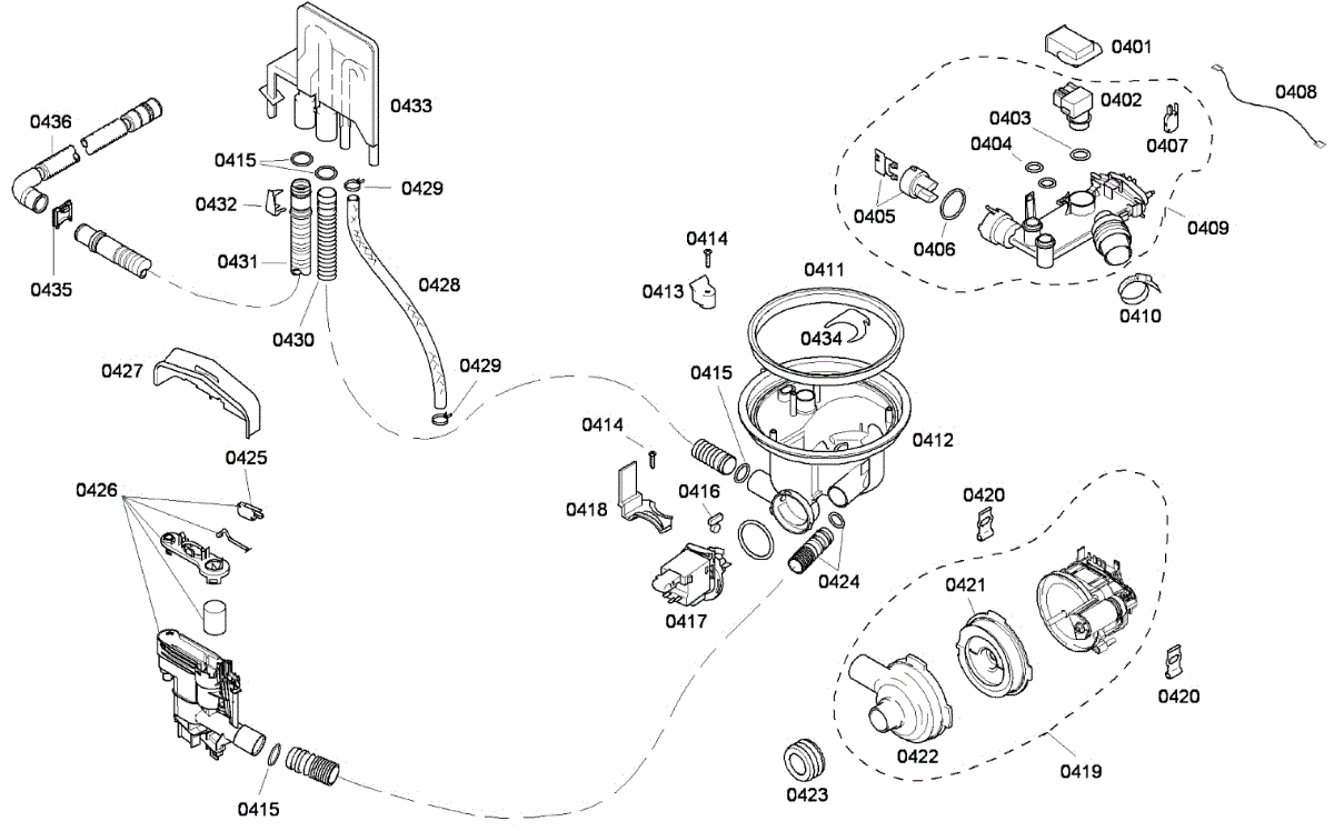 Seals connection between pump and sump to prevent leaks during wash cycles. Replace if water pools under dishwasher or pump noise occurs.