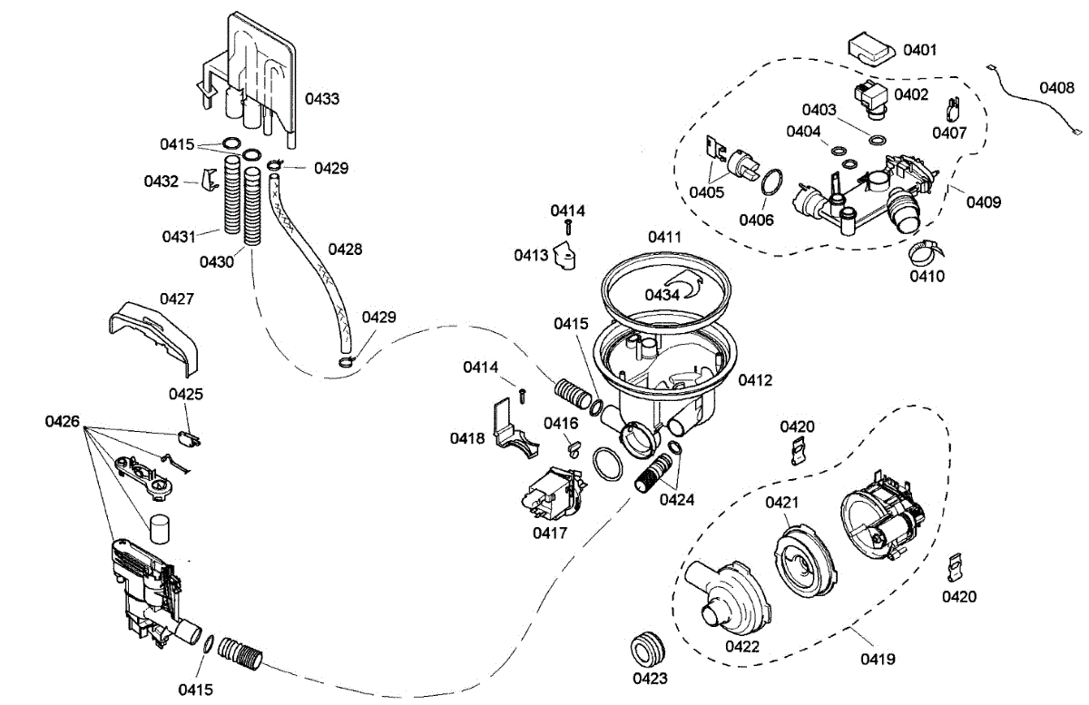 Seals connection between pump and sump to prevent leaks during wash cycles. Replace if water pools under dishwasher or pump noise occurs.