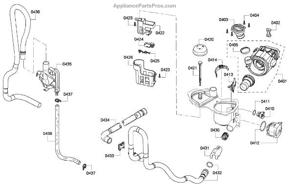 The Drain Hose is an OEM component for Bosch dishwashers. It is a flexible plastic tube responsible for removing used wash water from the dishwasher sump to household drain plumbing located outside the appliance. Causes of a bad drain hose include cracks developing along joints from constant bending during drainage or mineral buildup restricting water flow over time. Symptoms of a bad drain hose involve:
