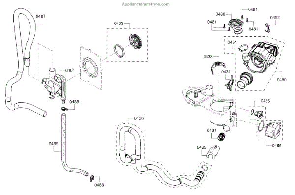 The Drain Hose is an OEM component for Bosch dishwashers. It is a flexible plastic tube responsible for removing used wash water from the dishwasher sump to household drain plumbing located outside the appliance. Causes of a bad drain hose include cracks developing along joints from constant bending during drainage or mineral buildup restricting water flow over time. Symptoms of a bad drain hose involve: