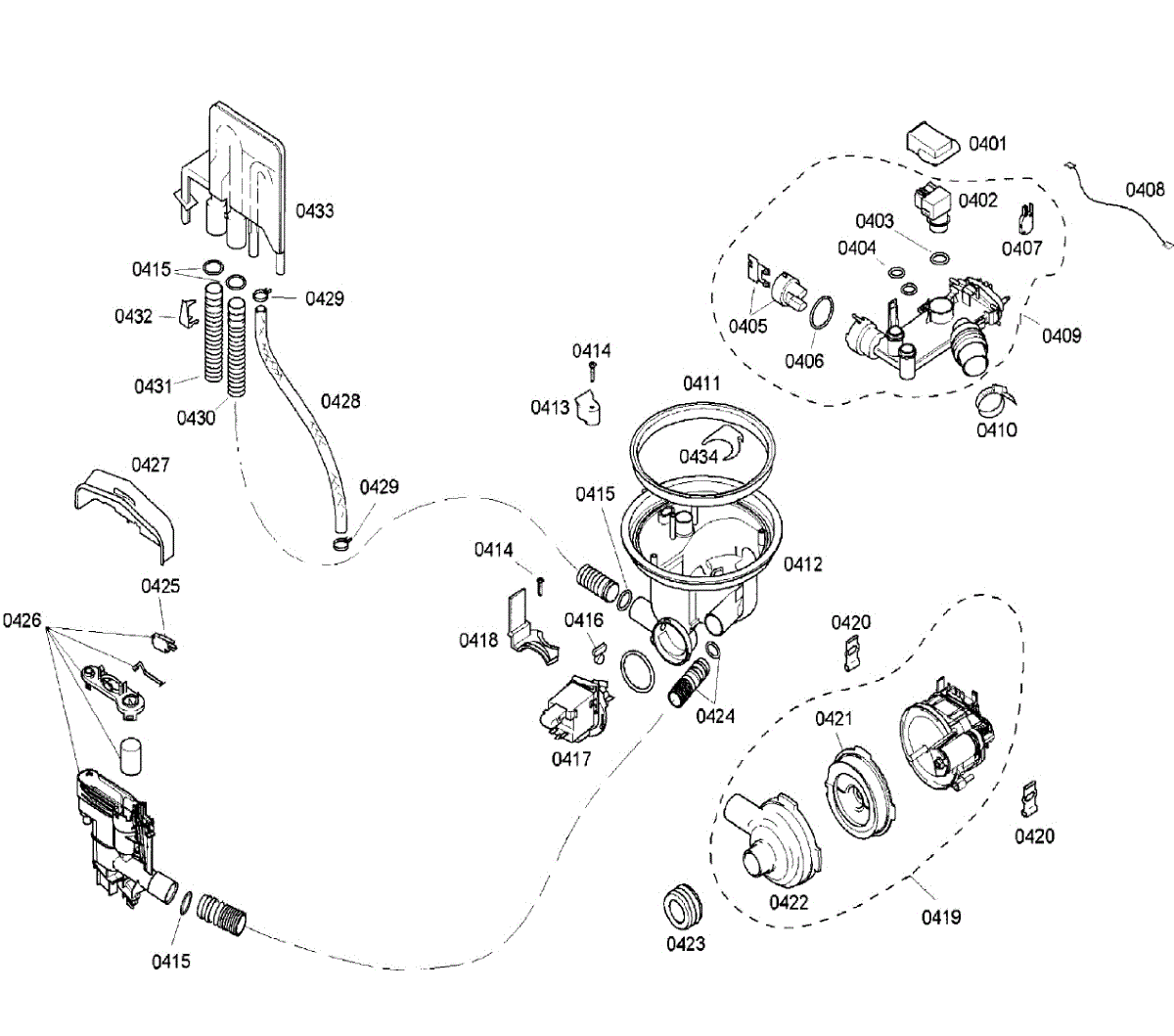 Fix a dishwasher that won't drain or makes grinding noise during drain cycle. This pump removes dirty water from the tub. Easy 5-15 minute replacement.