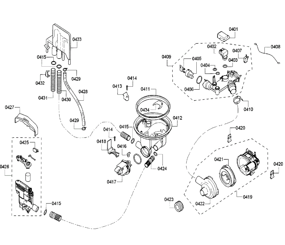 Seals connection between pump and sump to prevent leaks during wash cycles. Replace if water pools under dishwasher or pump noise occurs.