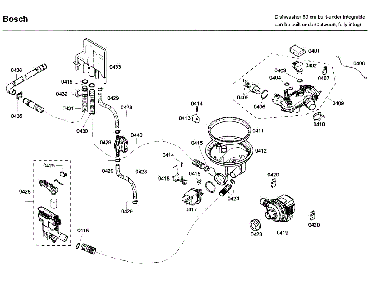 Replaces cracked or brittle dishwasher hose connecting the sump to the water inlet valve. Includes 2 o-rings. Essential for preventing leaks during pump replacement or routine maintenance.