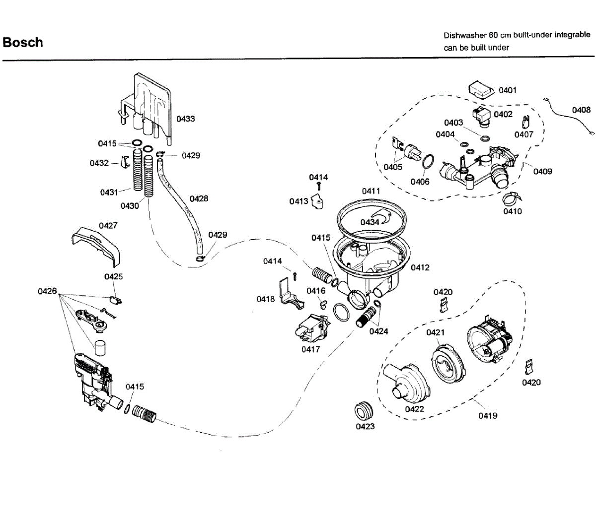 Replaces cracked or brittle dishwasher hose connecting the sump to the water inlet valve. Includes 2 o-rings. Essential for preventing leaks during pump replacement or routine maintenance.