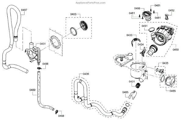 The Drain Hose is an OEM component for Bosch dishwashers. It is a flexible plastic tube responsible for removing used wash water from the dishwasher sump to household drain plumbing located outside the appliance. Causes of a bad drain hose include cracks developing along joints from constant bending during drainage or mineral buildup restricting water flow over time. Symptoms of a bad drain hose involve: