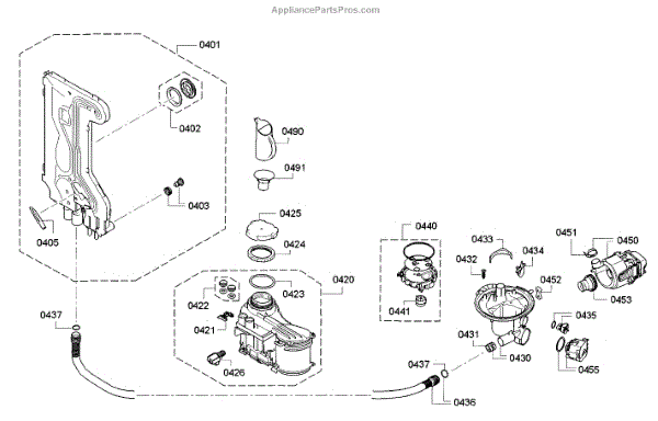 • Channels wash and rinse water to the spray arms and wash assembly