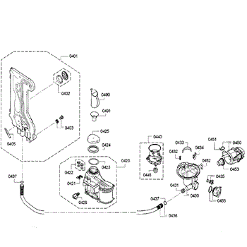 The Sump Assembly is an OEM part for Bosch dishwashers. It collects and channels water to the pump, ensuring proper circulation and drainage during the wash cycle.