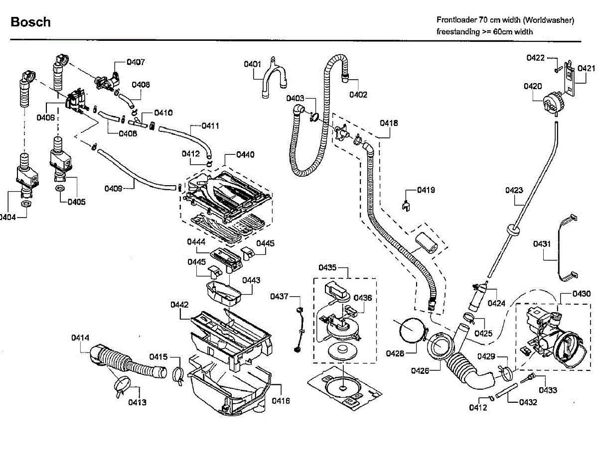 Fix detergent not dispensing or leaking dispenser issues with this washer dispenser case. Direct fit for Bosch front-load models. Moderate DIY repair.
