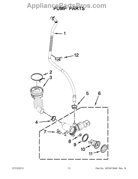 This quality drain pump is designed to fit washing machines. It's an internal part that is tasked with removing the water that is in the tub during the spin cycle. The pump forces the water in the bottom to go up into the drain hose. The hose loops up to the top of the washing machine and then down to the drain so the tub can easily fill. If the pump is starting to fail, a humming noise may be present.If the washing machine drain pump needs to be replaced, unplug the appliance from the wall or turn off the circuit breaker. The water source should also be turned off throughout the process. Remove the washer face to get access to the drain pump. The pump is typically in one of the corners, where it can be inspected before any clogs are removed. Disconnect the part and replace it with the new drain hose.This drain pump is made to work with several washing machines by Maytag. It is sourced directly from the manufacturer as a genuine OEM replacement part. The component is priced individually.