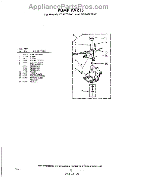 Parts for Whirlpool CDA1700W1: 10 - Pump Parts