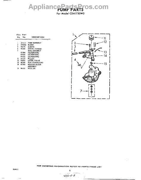 Parts for Whirlpool CDA1750W0: 08 - Pump Parts