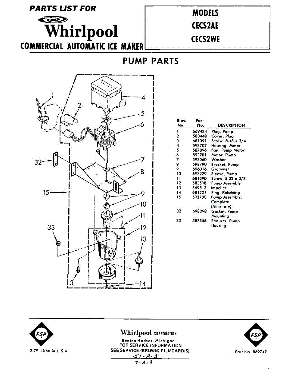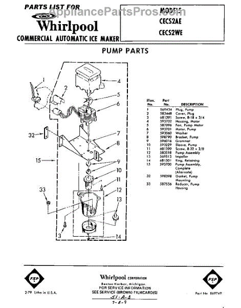 Parts for Whirlpool CECS2WE: 01 - Pump Parts