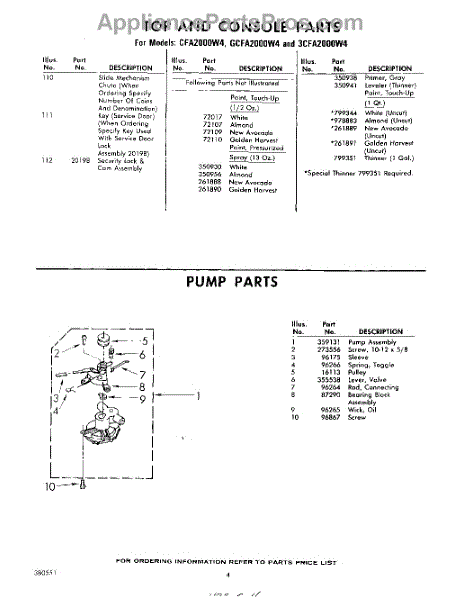 Parts for Whirlpool CFA2000W4: 04 - Pump Parts