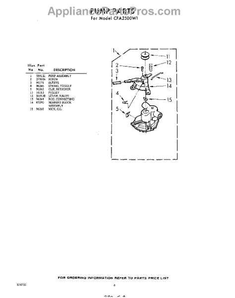 Parts for Whirlpool CFA2500W1: 08 - Pump Parts