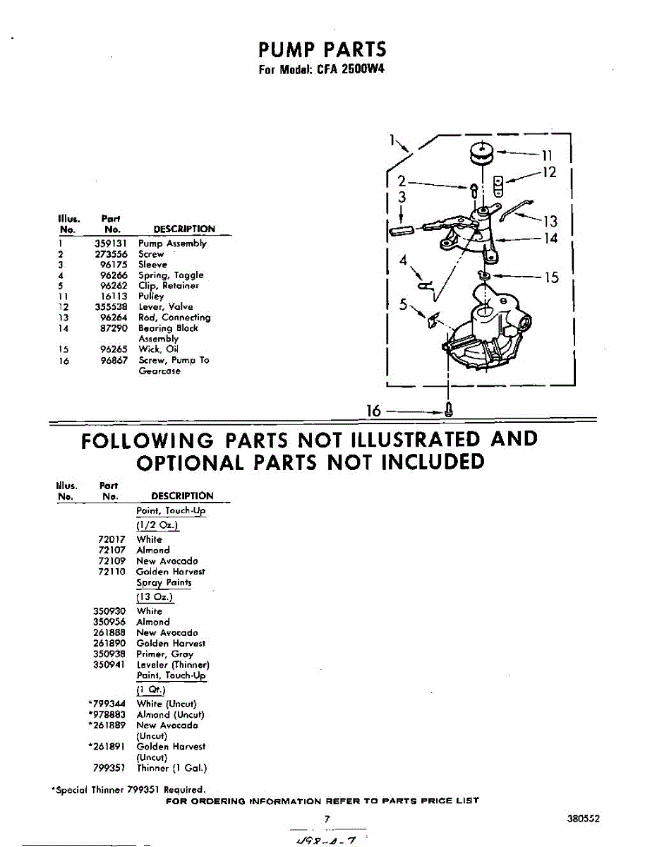 Parts for Whirlpool CFA2500W4: 07 - Pump Parts